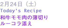 | 1 牛モモ肉に、塩、コショウ、フライパンで表面をしっかりと焼き、オーブンに入れる。焼き加減は、レア、ウェルダム、お好みで。