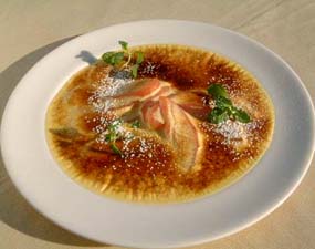 | 3 1のリンゴを好みにカットして器に盛り、2をかけて、最後にバーナーで焼き色をつける。
